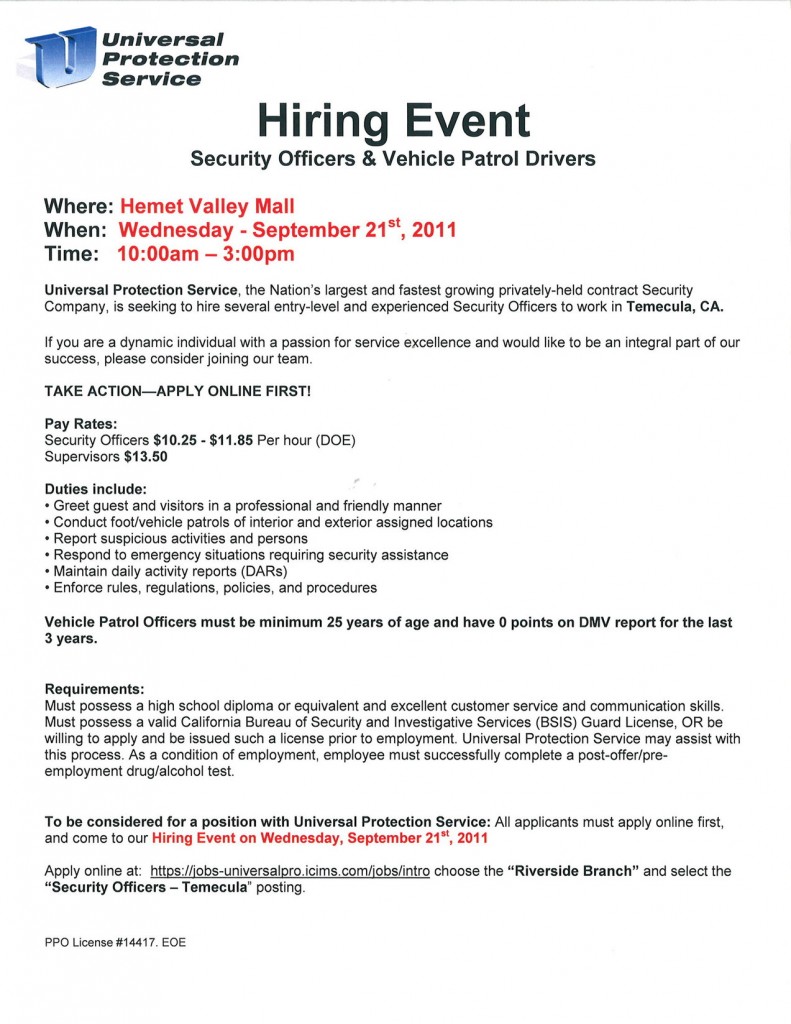 Security Hiring Event Sept. 21, 2011