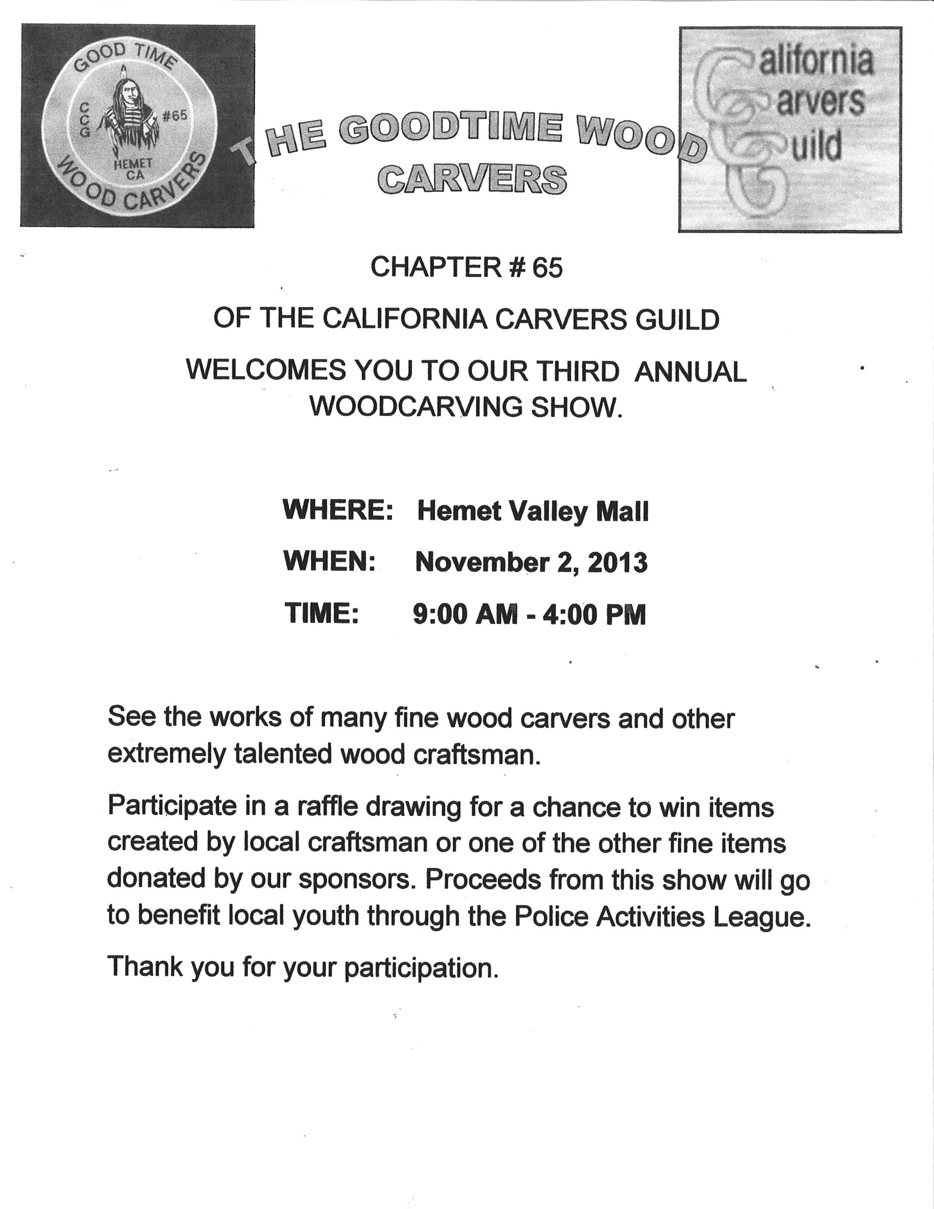 The Good Time Wood Carvers come to the mall every Wednesday morning from 9am to 11am at the Sears Atrium. Come visit and learn about this interesting craft. See carvers use their specialized tools and artistry in creating their pieces of art. The Good Time Wood Carvers is a non-profit organization open for new members.