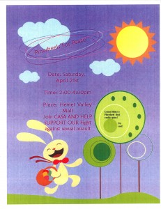 On Saturday, April 21 from 2pm to 4pm C.A.S.A. and the Hemet Valley Mall are hosting a crafting event – Pinwheels for Peace. This free event is open to children of every age. Come join us in creating colorful pinwheels this day and help support our fight against sexual assault.